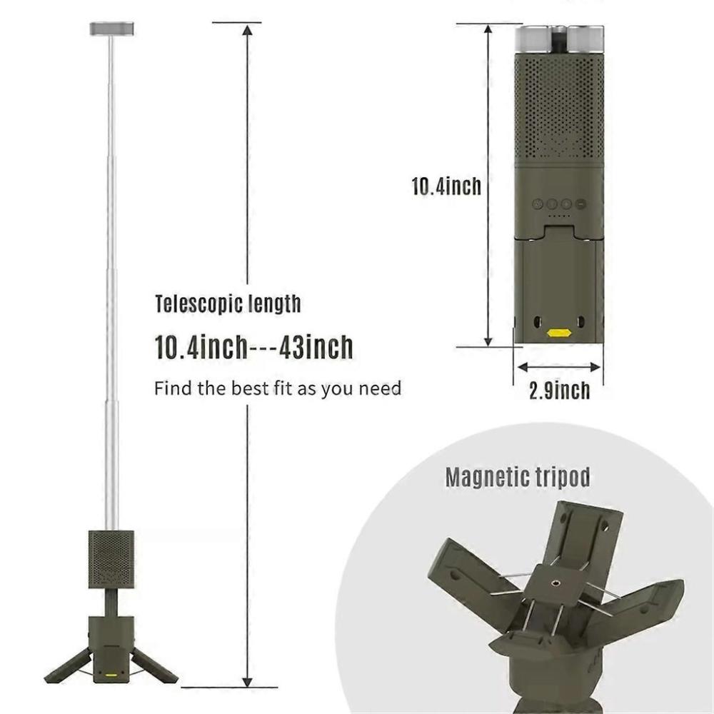 - محمول وقابل للسحب يتميز الفانوس الذي يعمل بالبطارية بتصميم متعدد الأغراض، قابل للطي والسحب، ويمكن طيه حتى 10.5 بوصة فقط، ويسهل وضعه في حقيبة الظهر. يمتد العمود التلسكوبي المكون من 4 أقسام بالكامل إلى أقصى ارتفاع 39.37 بوصة، ويمكن تدوير الرأس 180 درجة لإضاءة منطقة واسعة. تسمح القاعدة ذات المغناطيسات القوية وفتحات التثبيت بتثبيته بشكل آمن على الأسطح المعدنية أو تعليقه أو تثبيته على الأرض